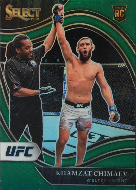 Khamzat Chimaev's MMA cards are available in at least 19 sets. Khamzat Chimaev's biggest 7-day price movers are 2021 Select UFC #218 Octagonside Green /5, 2021 Prizm UFC #7 Octagon /8, and 2021 Prizm UFC #7 Black /1.