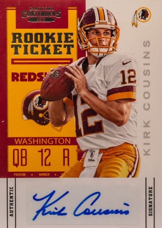 Kirk Cousins' Football cards are available in at least 36 sets. Kirk Cousins' biggest 7-day price movers are 2012 Topps #326 Base, 2012 Contenders #155 Rookie Ticket Auto (Two Hands on Ball), and 2024 Luminance #ANI-KCS Animation /(SSP).