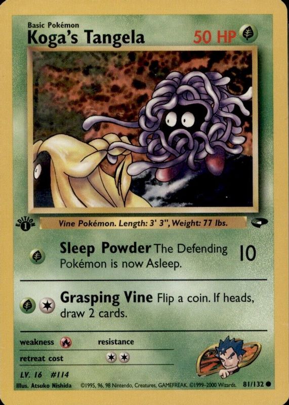 Koga's Tangela's Pokemon cards are available in at least 1 sets. Koga's Tangela's biggest 7-day price movers are 2000 Gym Challenge #081/132 1st Edition.