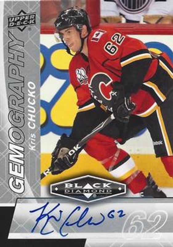Kris Chucko's Hockey cards are available in at least 15 sets. Kris Chucko's biggest 7-day price movers are 2010 Upper Deck Black Diamond #G-KC Gemography, 2009 Upper Deck Black Diamond #161 Ruby /100, and 2009 Upper Deck Black Diamond #161 Onyx /1.