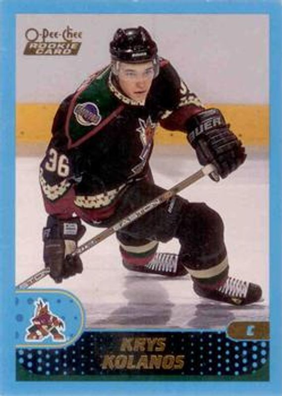 Krys Kolanos' Hockey cards are available in at least 11 sets. Krys Kolanos' biggest 7-day price movers are 2001 O-Pee-Chee #334 Base, 2002 Parkhurst #61 Chicago Sportsfest Expo Gold /1, and 2002 Parkhurst #61 Chicago Sportsfest Expo Silver /10.