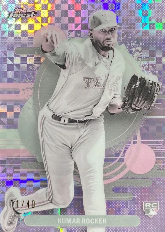 Kumar Rocker's Baseball cards are available in at least 37 sets. Kumar Rocker's biggest 7-day price movers are 2025 Topps Finest #121 Uncommon - Pearl Checkerboard Refractor /40, 2022 Bowman Draft #CDA-KR Chrome DP Auto - Black Refractor /75 (1st), and 2025 Topps Chrome #73 Black Lava Refractor /10.