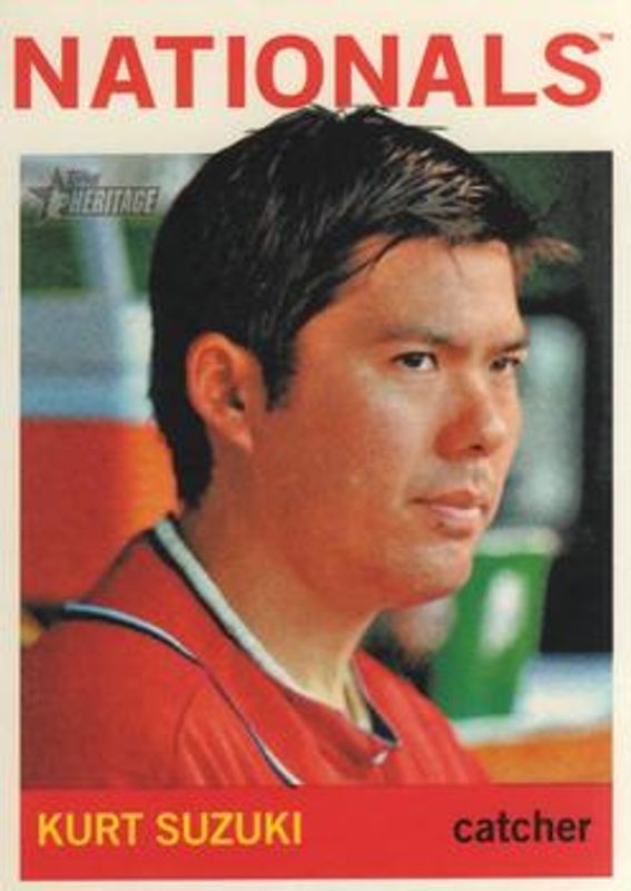 Kurt Suzuki's Baseball cards are available in at least 7 sets. Kurt Suzuki's biggest 7-day price movers are 2013 Topps Heritage #334 Base, 2013 Topps Heritage #334 Venezuelan, and 2019 Topps Throwback Thursday #260 Base.