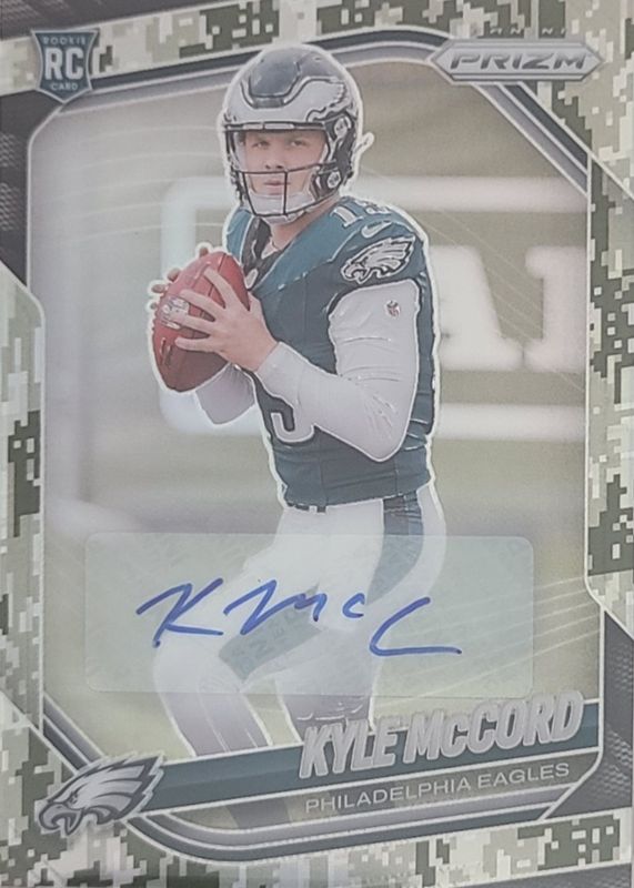 Kyle McCord's Football cards are available in at least 32 sets. Kyle McCord's biggest 7-day price movers are 2025 Prizm #377 Purple Pulsar, 2025 Donruss #325 Rated Rookie Autographs - Orange, and 2025 Prizm #377 Green Flash.