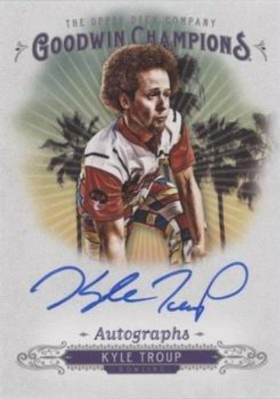Kyle Troup's Multi-Sport cards are available in at least 1 sets. Kyle Troup's biggest 7-day price movers are 2018 Upper Deck Goodwin Champions #A-KT Autographs, 2018 Upper Deck Goodwin Champions #A-KT Autographs Inscribed /50, and 2018 Upper Deck Goodwin Champions Blank Back.