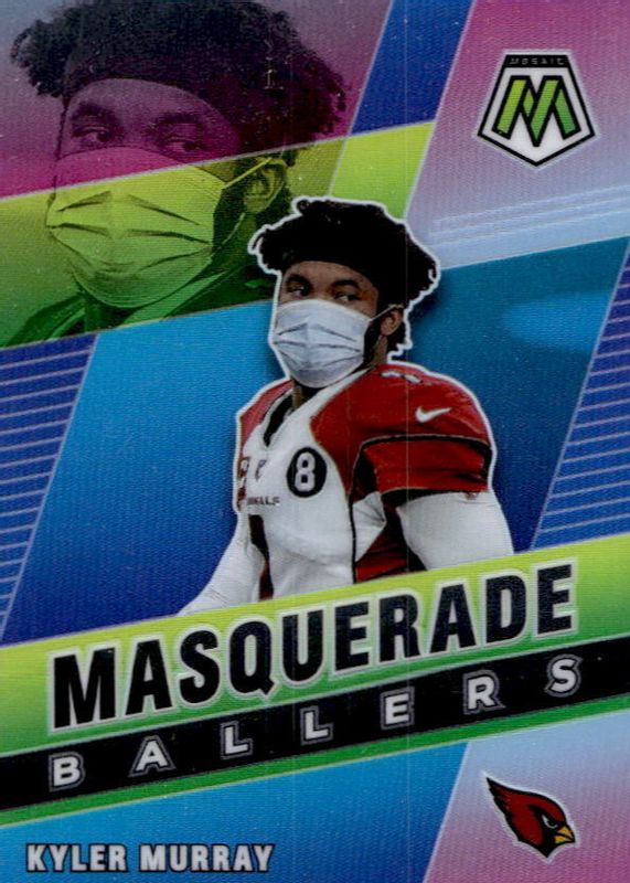 Kyler Murray's Football cards are available in at least 102 sets. Kyler Murray's biggest 7-day price movers are 2019 Select #11 Sensations, 2021 Mosaic #MB-18 Masquerade Ballers /(SSP), and 2022 Mosaic #GM-12 Glass Mosaic /(SSP).