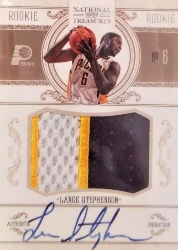 Lance Stephenson's Basketball cards are available in at least 37 sets. Lance Stephenson's biggest 7-day price movers are 2010 National Treasures #232 Rookie Patch Auto /99, 2010 National Treasures #232 Rookie Patch Auto - Century Gold /25, and 2013 Innovation #34 Stained Glass - Light Blue /(SSP).