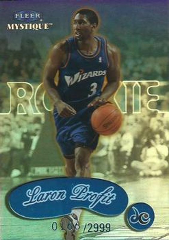 Laron Profit's Basketball cards are available in at least 4 sets. Laron Profit's biggest 7-day price movers are 1999 Fleer Mystique #124 Base /2999, 1999 Fleer Mystique #124 Masterpiece /1, and 1999 Upper Deck #349 Gold /1.