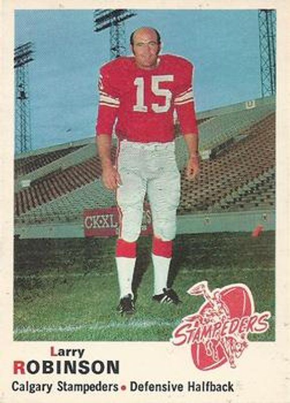 Larry Robinson's Football cards are available in at least 3 sets. Larry Robinson's biggest 7-day price movers are 1970 O-Pee-Chee CFL #91 Base, 1971 O-Pee-Chee CFL #130 Base, and 1972 O-Pee-Chee CFL #56 Base.