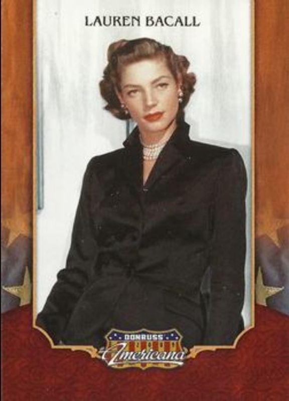 Lauren Bacall's Pop Culture cards are available in at least 2 sets. Lauren Bacall's biggest 7-day price movers are 2009 Donruss Americana #27 Base, 2009 Donruss Americana #6 Cinema Stars Material Super Stars /3, and 2009 Donruss Americana #5 Hollywood Letter Patch Autographs /45.