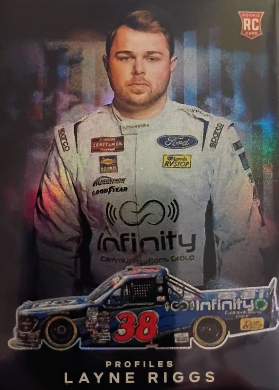 Layne Riggs' Racing cards are available in at least 6 sets. Layne Riggs' biggest 7-day price movers are 2024 Prizm NASCAR #2 Profiles /(SSP), 2025 Donruss NASCAR #3 Coming Attractions, and 2025 Donruss NASCAR #3 Coming Attractions - Blue Ice /35.