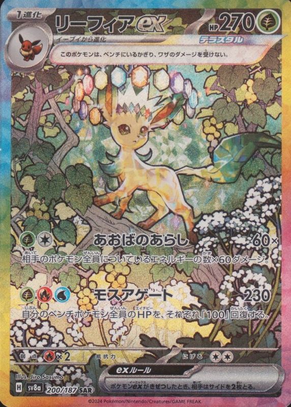 Leafeon ex's Pokemon cards are available in at least 4 sets. Leafeon ex's biggest 7-day price movers are 2024 Japanese Scarlet & Violet: Terastal Fest ex #200/187 Special Art Rare, 2016 XY: Generations #10/83 Holo, and 2015 Japanese XY-P Promo #192/XY-P Grass/Fighting Battle Strength Set.