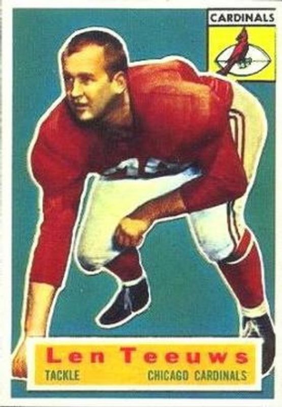 Len Teeuws' Football cards are available in at least 2 sets. Len Teeuws' biggest 7-day price movers are 1956 Topps #46 Base, 1994 Topps Archives 1956 #46 Gold, and 1994 Topps Archives 1956 #46 Base.