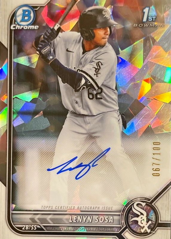 Lenyn Sosa's Baseball cards are available in at least 10 sets. Lenyn Sosa's biggest 7-day price movers are 2022 Bowman #CPA-LS Chrome Prospect Auto - Blue Refractor /150 (1st), 2022 Bowman #CPA-LS Chrome Prospect Auto (1st), and 2022 Bowman #CPA-LS Chrome Prospect Auto - Atomic Refractor /100 (1st).
