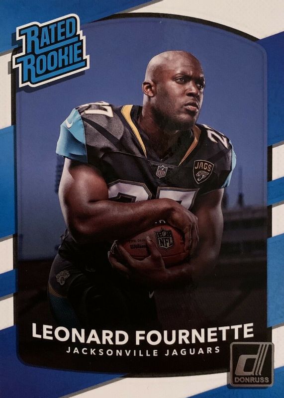 Leonard Fournette's Football cards are available in at least 32 sets. Leonard Fournette's biggest 7-day price movers are 2017 Donruss #319 Base, 2017 Prizm #RA-LF Rookie Autographs, and 2018 Panini Emergence #E-2 Base.