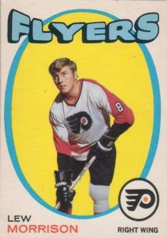 Lew Morrison's Hockey cards are available in at least 6 sets. Lew Morrison's biggest 7-day price movers are 1971 O-Pee-Chee #89 Base, 1972 O-Pee-Chee #143 Base, and 1972 Topps #58 Base.