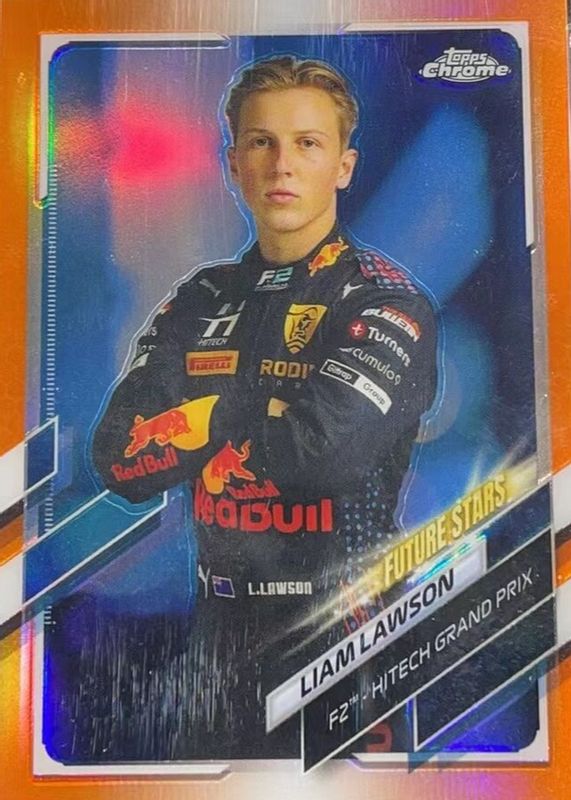 Liam Lawson's Racing cards are available in at least 11 sets. Liam Lawson's biggest 7-day price movers are 2025 Topps Chrome Formula 1 #11 Refractor, 2025 Topps Chrome Formula 1 #11 Base, and 2021 Topps Chrome Formula 1 #68 Orange Refractor /25.