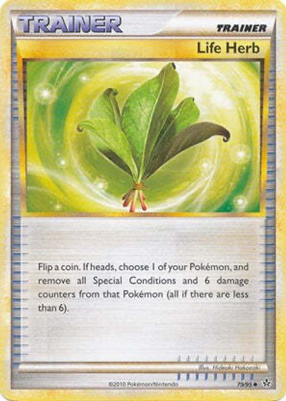 Life Herb's Pokemon cards are available in at least 6 sets. Life Herb's biggest 7-day price movers are 2010 HeartGold & SoulSilver: Unleashed #79/95 Base, 2010 HeartGold & SoulSilver: Unleashed #79/95 Reverse Holo, and 2004 EX: Hidden Legends #090/101 Reverse Holo.