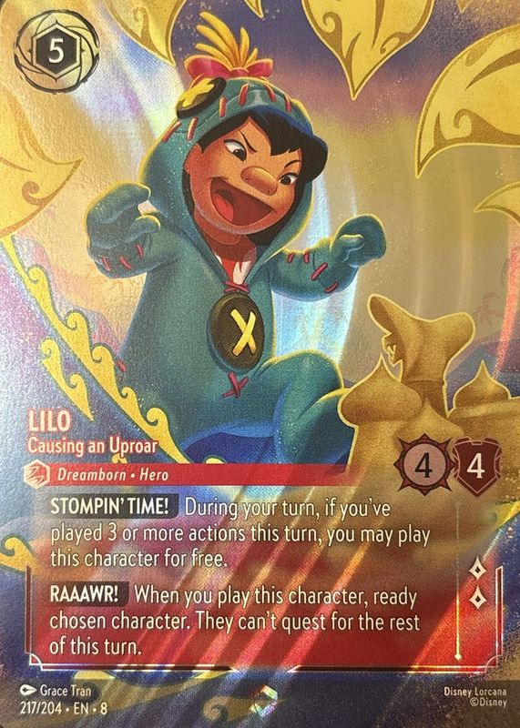 Lilo - Causing an Uproar's Disney Lorcana cards are available in at least 1 sets. Lilo - Causing an Uproar's biggest 7-day price movers are 2025 Reign of Jafar #217/204 Enchanted (Alternate Art), 2025 Reign of Jafar #137/204 Cold Foil, and 2025 Reign of Jafar #137/204 Base.