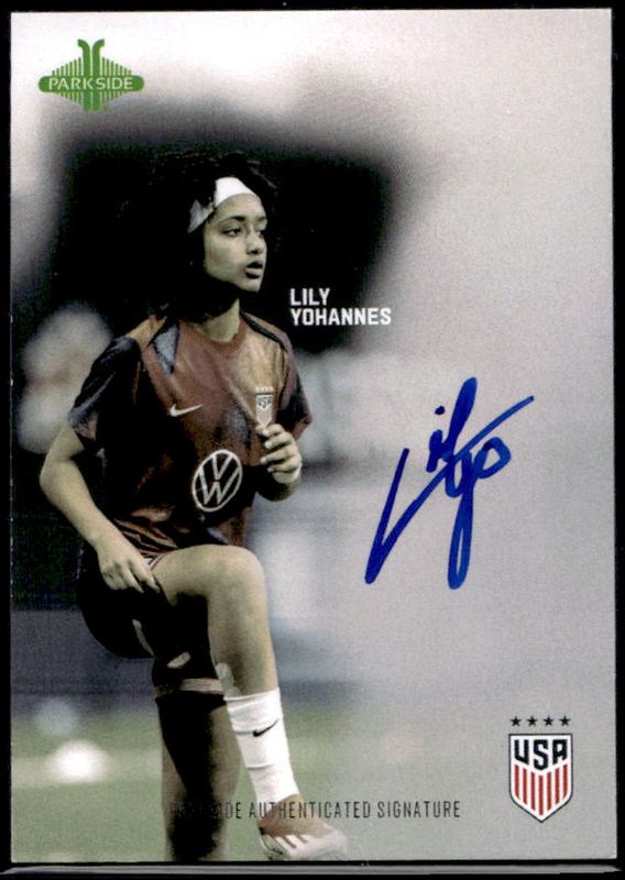 Lily Yohannes' Soccer cards are available in at least 7 sets. Lily Yohannes' biggest 7-day price movers are 2024 Parkside USWNT One Nation One Team Signatures, 2023 Topps Chrome Sapphire Edition UEFA Women's Champions League #25 Red /5, and 2023 Topps Chrome Sapphire Edition UEFA Women's Champions League #QF-12 Queens of Football.