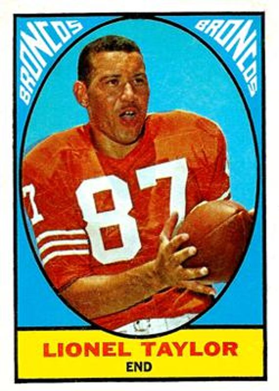 Lionel Taylor's Football cards are available in at least 9 sets. Lionel Taylor's biggest 7-day price movers are 1967 Topps #42 Base, 1966 Topps #45 Base, and 1965 Topps #65 Base.