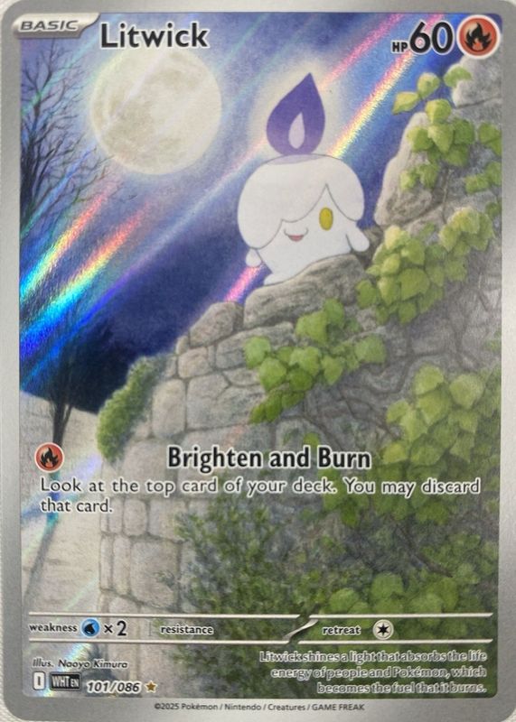 Litwick's Pokemon cards are available in at least 15 sets. Litwick's biggest 7-day price movers are 2025 Scarlet & Violet: White Flare #016/086 Reverse Holo, 2025 Scarlet & Violet: White Flare #101/086 Illustration Rare, and 2025 Japanese Scarlet & Violet: Black Bolt #100/086 Art Rare.