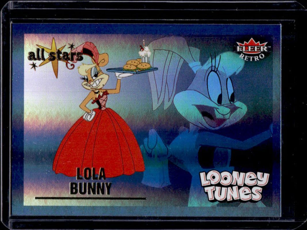 Lola Bunny's Pop Culture cards are available in at least 1 sets. Lola Bunny's biggest 7-day price movers are 2024 Fleer Retro Looney Tunes #AS-14 1992 Fleer All Stars Retro, 2024 Fleer Retro Looney Tunes #92 Base, and 2024 Fleer Retro Looney Tunes #40 Base.