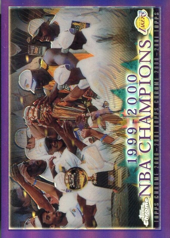 Los Angeles Lakers' Basketball cards are available in at least 19 sets. Los Angeles Lakers' biggest 7-day price movers are 2000 Topps Chrome #85 Refractor (Team Championship), 2010 Donruss #290 Press Proof /100, and 2010 Donruss #290 Base.