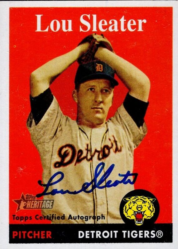 Lou Sleater's Baseball cards are available in at least 4 sets. Lou Sleater's biggest 7-day price movers are 2007 Topps Heritage #ROA-LS Real One Autographs, 1958 Topps #46 Yellow Name, and 2007 Topps Heritage #ROA-LS Real One Autographs - Red Ink /58.