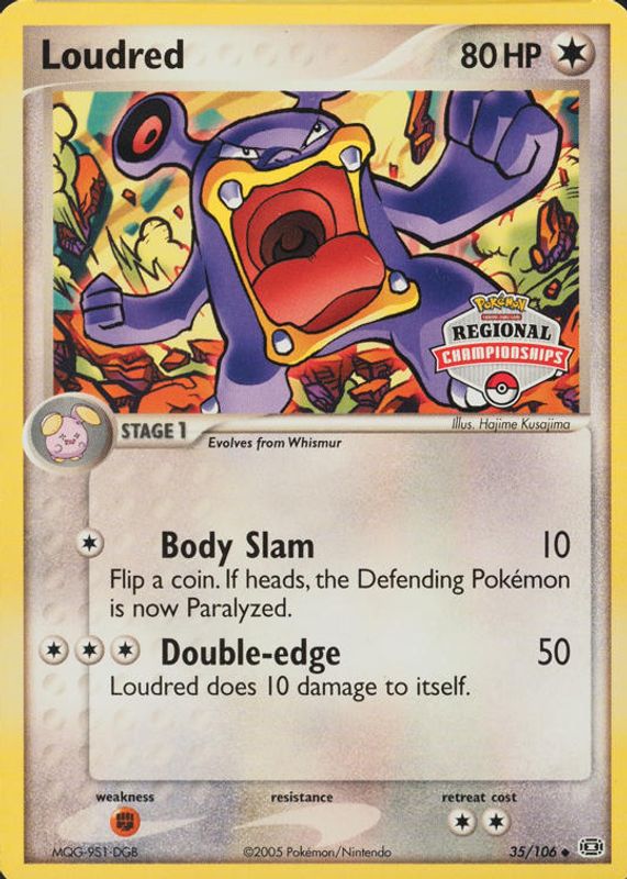 Loudred's Pokemon cards are available in at least 17 sets. Loudred's biggest 7-day price movers are 2023 Scarlet & Violet: Paradox Rift #212/182 Illustration Rare, 2005 EX: Emerald #035/106 Promo (Regional Championships), and 2006 EX: Crystal Guardians #023/100 Reverse Holo.