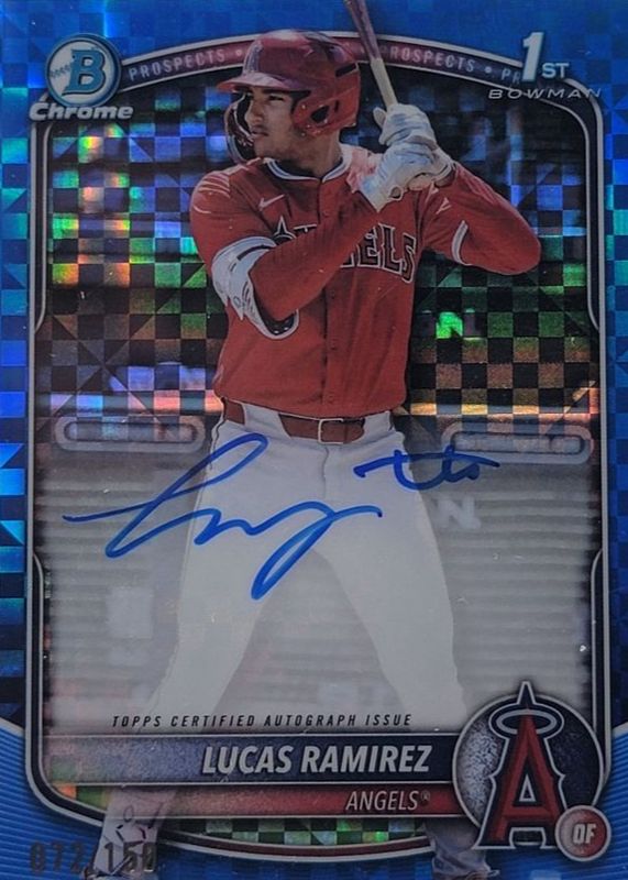 Lucas Ramirez's Baseball cards are available in at least 2 sets. Lucas Ramirez's biggest 7-day price movers are 2025 Bowman #CPA-LR Chrome Prospect Auto - Orange Wave Refractor /25 (1st), 2025 Bowman #CPA-LR Chrome Prospect Auto - Blue X-Fractor /150 (1st), and 2025 Bowman #CPA-LR Chrome Prospect Auto - Gold Refractor /50 (1st).