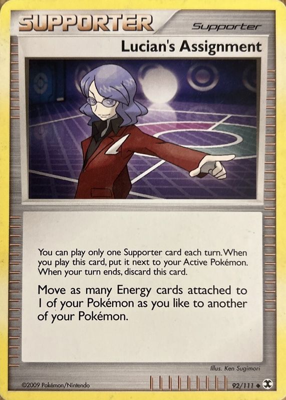 Lucian's Assignment's Pokemon cards are available in at least 1 sets. Lucian's Assignment's biggest 7-day price movers are 2009 Platinum: Rising Rivals #092/111 Base, 2009 Platinum: Rising Rivals #092/111 Reverse Holo, and 2009 Platinum: Rising Rivals #092/111 Promo (League Play).