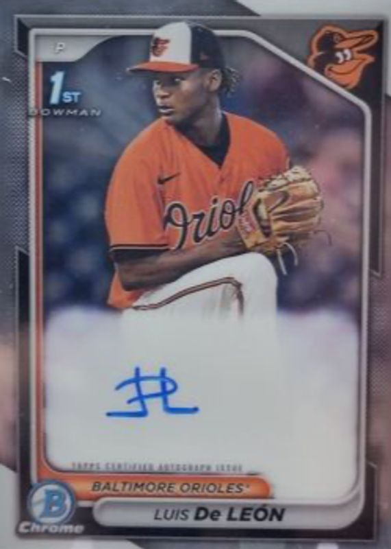 Luis De Leon's Baseball cards are available in at least 1 sets. Luis De Leon's biggest 7-day price movers are 2024 Bowman Chrome #CPA-LDL Prospect Auto (1st), 2024 Bowman Chrome #CPA-LDL Prospect Auto - Purple Refractor /250 (1st), and 2024 Bowman Chrome #CPA-LDL Prospect Auto - HTA Choice Refractor /150 (1st).