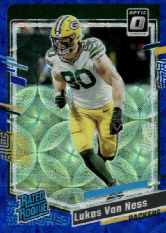 Lukas Van Ness' Football cards are available in at least 9 sets. Lukas Van Ness' biggest 7-day price movers are 2023 Optic #240 Blue Scope, 2023 Optic #240 Blue Glitter /(SSP), and 2023 Prizm #336 Blue Shimmer /25.