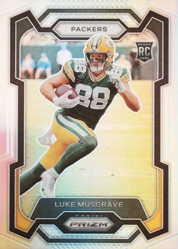 Luke Musgrave's Football cards are available in at least 15 sets. Luke Musgrave's biggest 7-day price movers are 2023 Prizm #337 Silver, 2023 Obsidian #134 Electric Etch Deep Sea Mojo /5, and 2023 Prizm #337 Purple Wave /99.