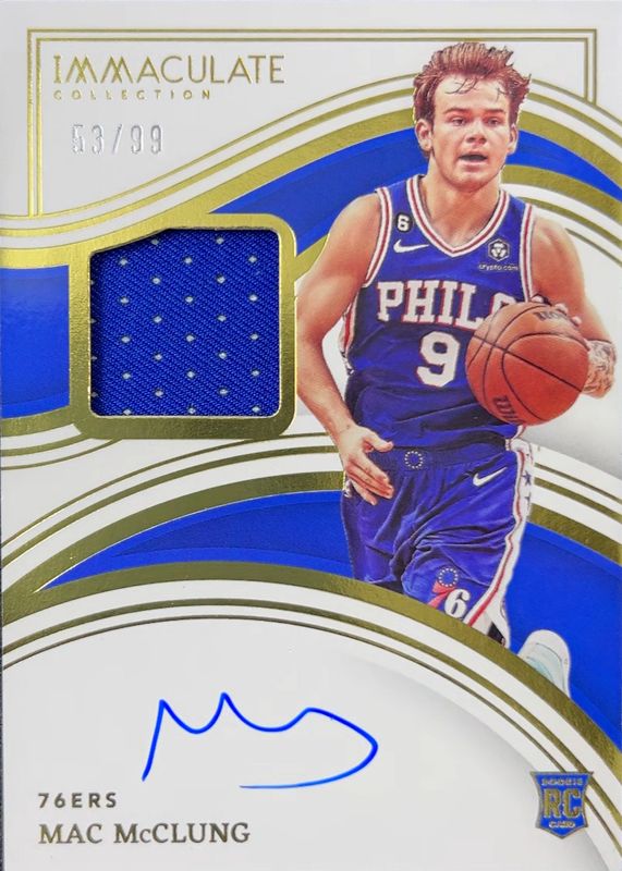 Mac McClung's Basketball cards are available in at least 13 sets. Mac McClung's biggest 7-day price movers are 2022 Immaculate #115 Rookie Patch Auto /99, 2022 Chronicles #505 Update - Asia Gold /8, and 2022 Chronicles #505 Update - Asia Jade /18.