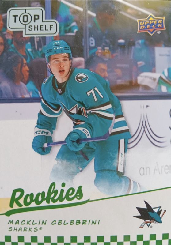 Macklin Celebrini's Multi-Sport cards are available in at least 2 sets. Macklin Celebrini's biggest 7-day price movers are 2025 Upper Deck NSCC Wrapper Redemption #TS-1 Top Shelf NHL Rookies, 2023 Upper Deck Game Dated Moments #66 Gold, and 2023 Upper Deck Game Dated Moments #66 Silver.