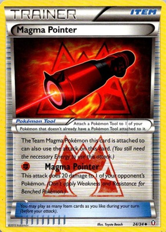 Magma Pointer's Pokemon cards are available in at least 1 sets. Magma Pointer's biggest 7-day price movers are 2015 XY: Double Crisis #24/34 Base, and 2015 XY: Double Crisis #24/34 Reverse Holo.