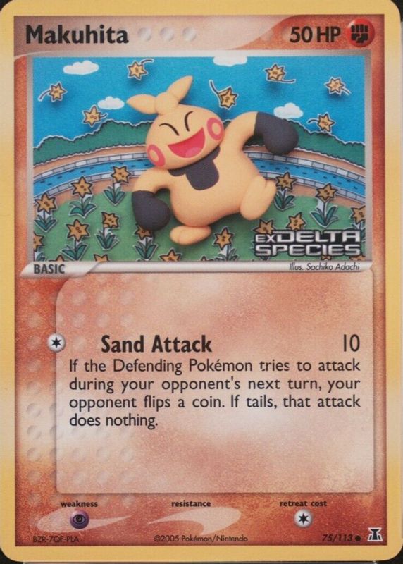 Makuhita's Pokemon cards are available in at least 19 sets. Makuhita's biggest 7-day price movers are 2005 EX: Delta Species #075/113 Reverse Holo, 2003 EX: Ruby & Sapphire #058/109 Base, and 2005 EX: Emerald #054/106 Base.