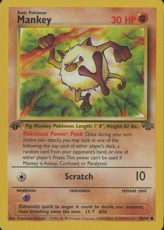 Mankey's Pokemon cards are available in at least 32 sets. Mankey's biggest 7-day price movers are 2024 Scarlet & Violet: Paldean Fates #169/091 Shiny Rare, 1997 Japanese Rocket Gang #56 Base, and 2023 Japanese Scarlet & Violet: Shiny Treasure ex #276/190 Shiny Rare.