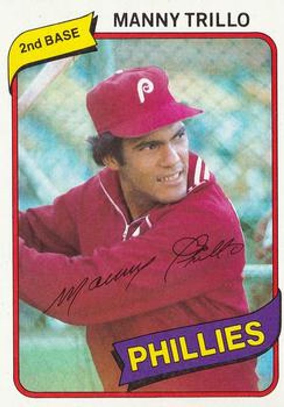 Manny Trillo's Baseball cards are available in at least 25 sets. Manny Trillo's biggest 7-day price movers are 1980 Topps #90 Base, 1978 O-Pee-Chee #217 Base, and 1988 Score #524 Base.