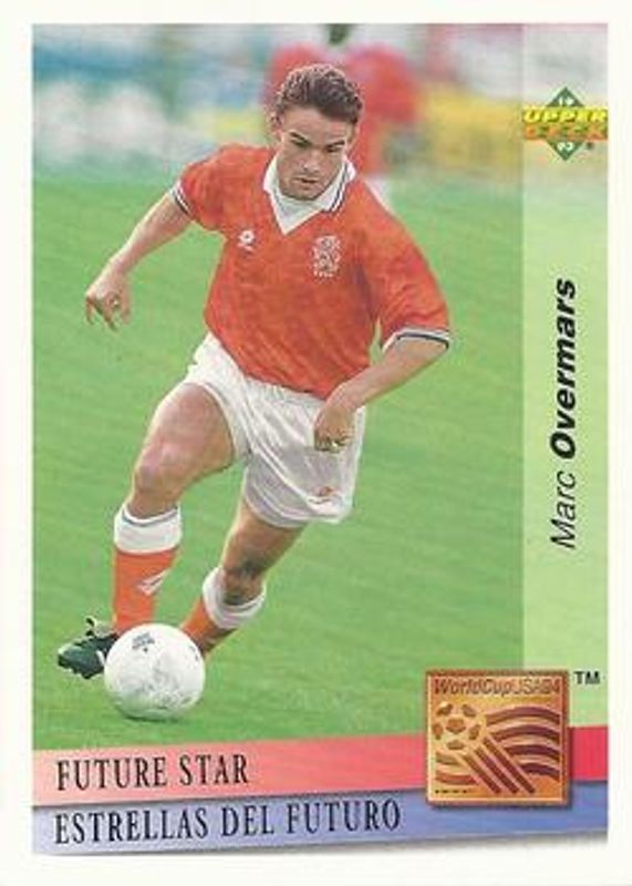 Marc Overmars' Soccer cards are available in at least 18 sets. Marc Overmars' biggest 7-day price movers are 1993 Upper Deck World Cup Preview (English/Spanish) #FS18 Future Stars, 1993 Upper Deck World Cup Preview (English/German) #134 Base, and 1993 Upper Deck World Cup Preview Adams Gum #160 Base.