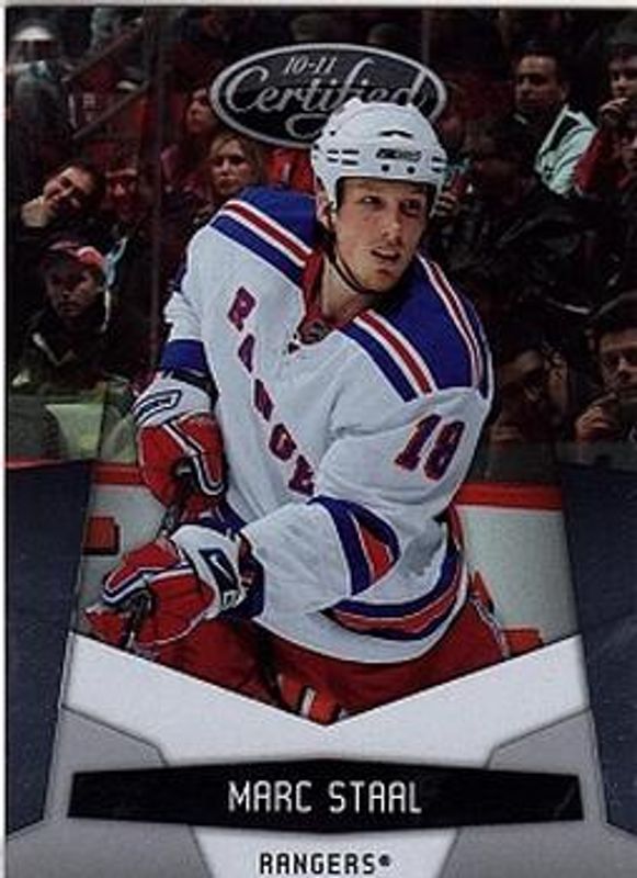 Marc Staal's Hockey cards are available in at least 38 sets. Marc Staal's biggest 7-day price movers are 2010 Certified #99 Base /799, 2010 Certified #99 Mirror Emerald /5, and 2010 Certified #99 Platinum Gold /25.