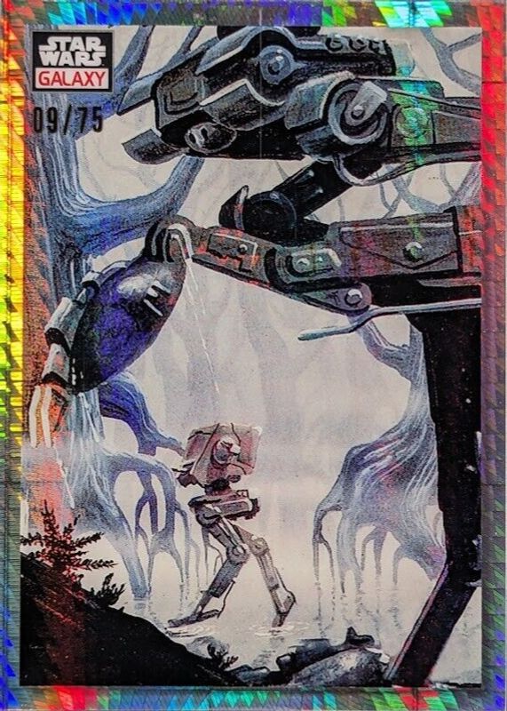 Marching AT-STs' Star Wars cards are available in at least 1 sets. Marching AT-STs' biggest 7-day price movers are 2023 Topps Chrome Star Wars Galaxy #38 Prism Refractor /75, 2023 Topps Chrome Star Wars Galaxy #38 Red Refractor /5, and 2023 Topps Chrome Star Wars Galaxy #38 Wave Refractor /99.