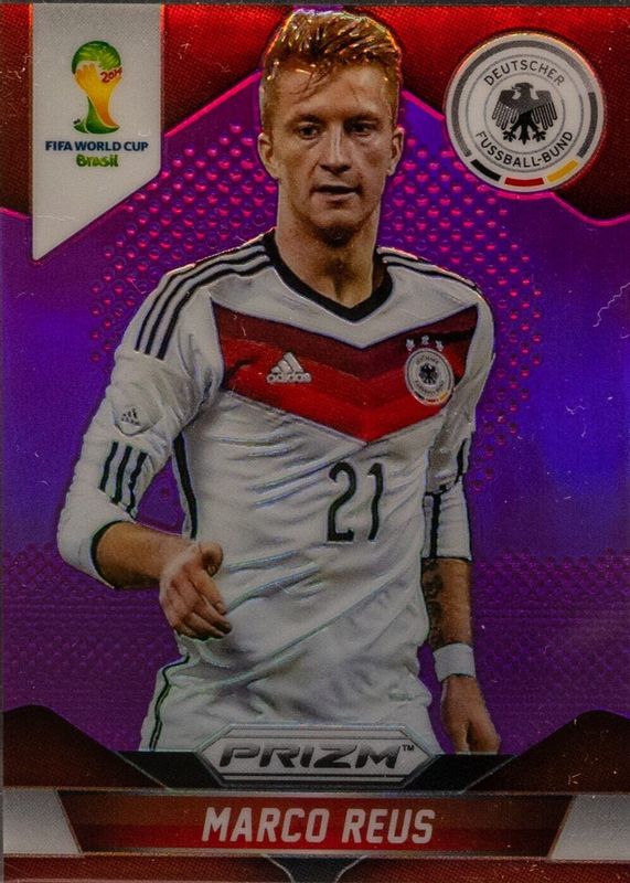 The biggest 30-day change Marco Reus cards are 2014 Prizm World Cup #91 Base, 2014 Prizm World Cup #91 Purple /99, and 2023 Topps Merlin Heritage UEFA Club Competitions #149 Pink /10.