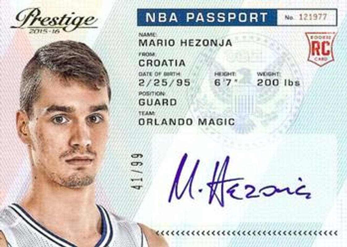 Mario Hezonja's Basketball cards are available in at least 65 sets. Mario Hezonja's biggest 7-day price movers are 2015 Prestige #PAS-MH NBA Passport /99, 2015 Prestige #4 Prestigious Picks - Bronze /49, and 2015 Prestige #32 Acetate Rookies.