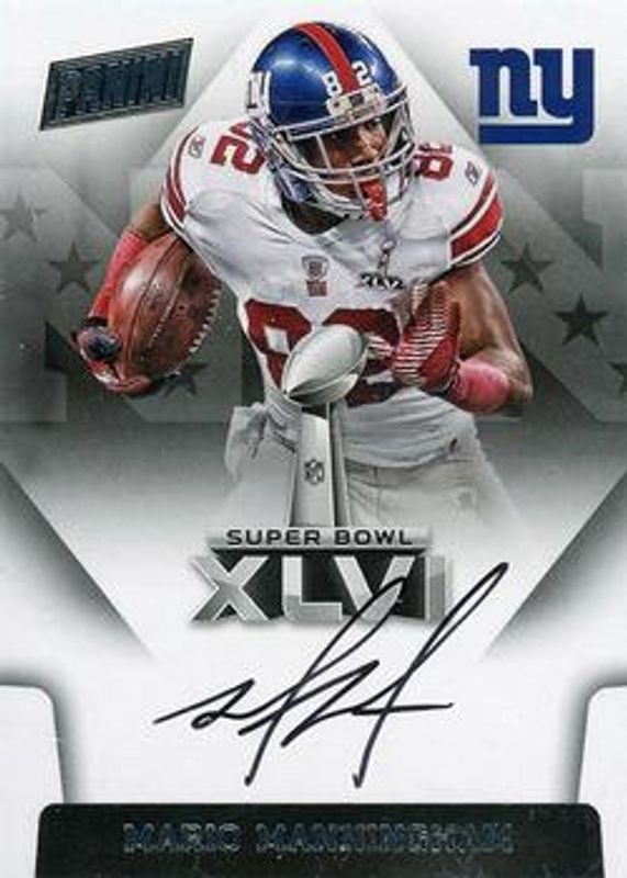 Mario Manningham's Football cards are available in at least 4 sets. Mario Manningham's biggest 7-day price movers are 2019 Plates & Patches #SBXLVI-MM Super Bowl Signatures, 2008 Donruss Elite National Convention #153 Status, and 2008 Donruss Elite National Convention #153 Aspirations.