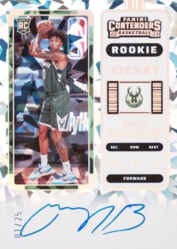 MarJon Beauchamp's Basketball cards are available in at least 40 sets. MarJon Beauchamp's biggest 7-day price movers are 2022 Contenders #143 Rookie Ticket Auto - Cracked Ice Ticket /25, 2023 Obsidian #VS-MJB Volcanic Signatures - Electric Etch Purple Flood /49, and 2023 Obsidian #VS-MJB Volcanic Signatures - Electric Etch Blue /30.