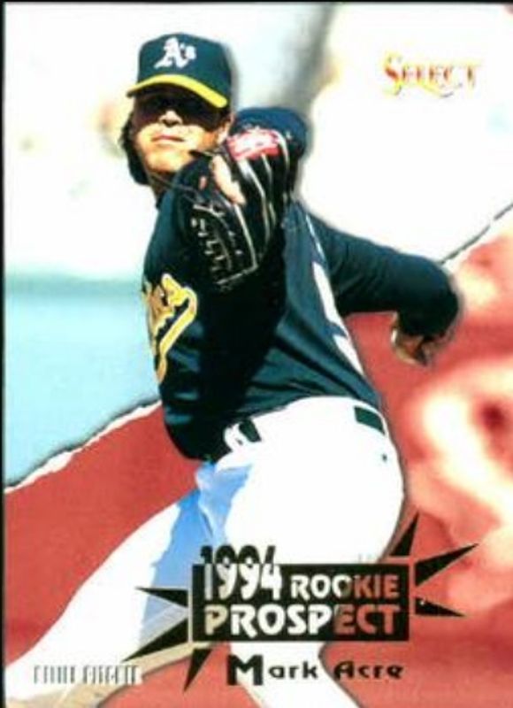 Mark Acre's Baseball cards are available in at least 12 sets. Mark Acre's biggest 7-day price movers are 1994 Pinnacle Select #413 Base, 1995 Flair #291 Base, and 1994 Flair #327 Base.