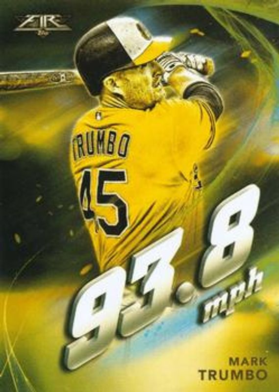 Mark Trumbo's Baseball cards are available in at least 14 sets. Mark Trumbo's biggest 7-day price movers are 2019 Topps Fire #MV-10 Maximum Velocity - Gold Minted, 2019 Topps Fire #MV-10 Maximum Velocity - Blue Chip, and 2019 Topps Fire #MV-10 Maximum Velocity.